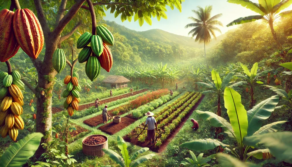 El cacao colombiano se cultiva bajo prácticas sostenibles que respetan la biodiversidad, apoyan a las comunidades agrícolas y promueven un impacto positivo en el medio ambiente.